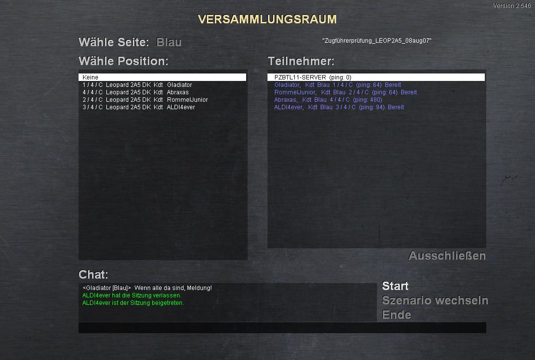 Habe ebenfalls ein Szenario geschrieben "Vulkanausbruch" (1x Sommer, 1x Winter) liegt unter Test auf dem Server. Sollten mind. 8 "Simulanten" mögl. mehr sein. Das Sze kann jederzeit beendet werden und kann über 4h dauern (Aufkl, Vtg, Angr). Näheres unter Szenarienvorstellung.