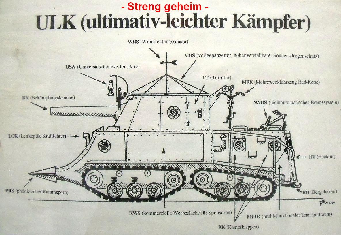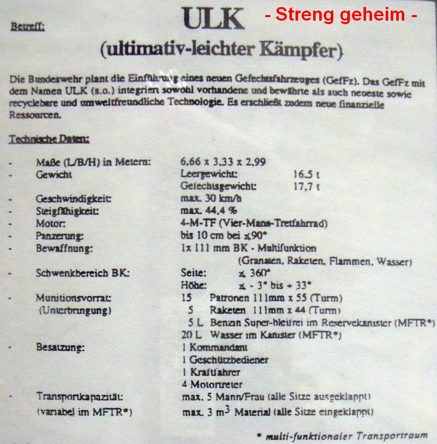 bekannt gab, wurden gegen 11:11 Uhr streng geheime Unterlagen eines zum April einzuführenden Gefechtsfahrzeuges entwendet. Für die Wiederbeschaffung der Unterlagen ist eine Belohnung "nach Kassenlage" geplant. "Fahndungsfotos" wurden zu diesem Zwecke an die anwesenden Journalisten verteilt: