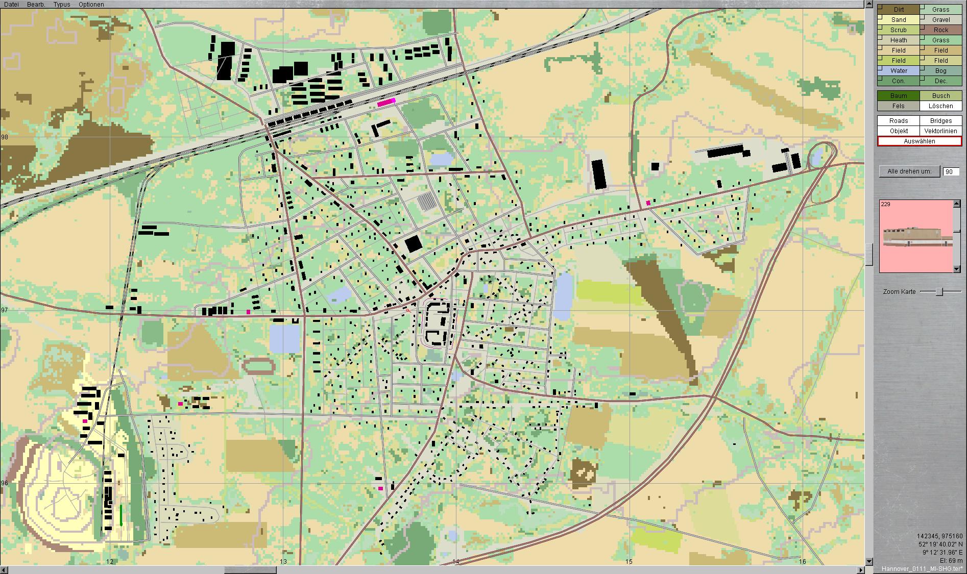 fehlerhaft an der vorhandenen Karte ist die Ausdehnung der Stadt, die falsche Hauptstrassenführung und wenn man schon dabei ist kann man auch ein paar neue Hausmodelle einfügen.