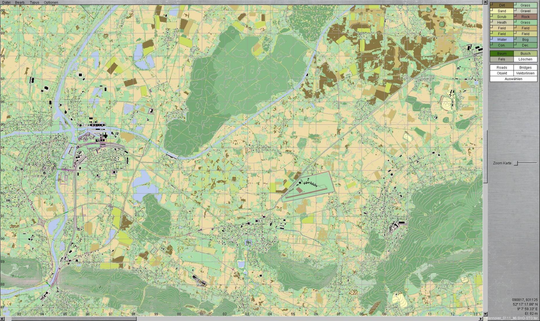 Als nächstes wird das Gelände "eingenordet" . Dazu nehme ich einen transparenten Bildbetrachter wie "2K-glass_mode" rufe danach im googlemaps das Gebiet Stadthagen auf und versuche nun im Gelände-Editor und in google den selben Maßstab zu finden.Dann lege ich beide "Karten" übereinander und pause das ab [Hilfe ist es mit ALT+TAB zu switchen]