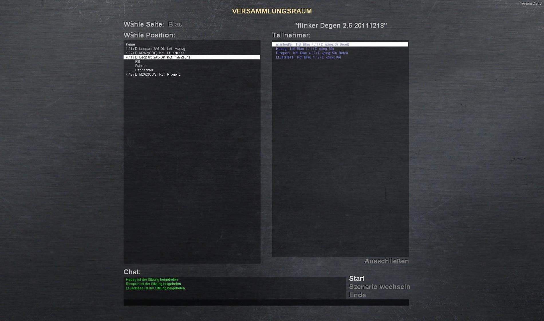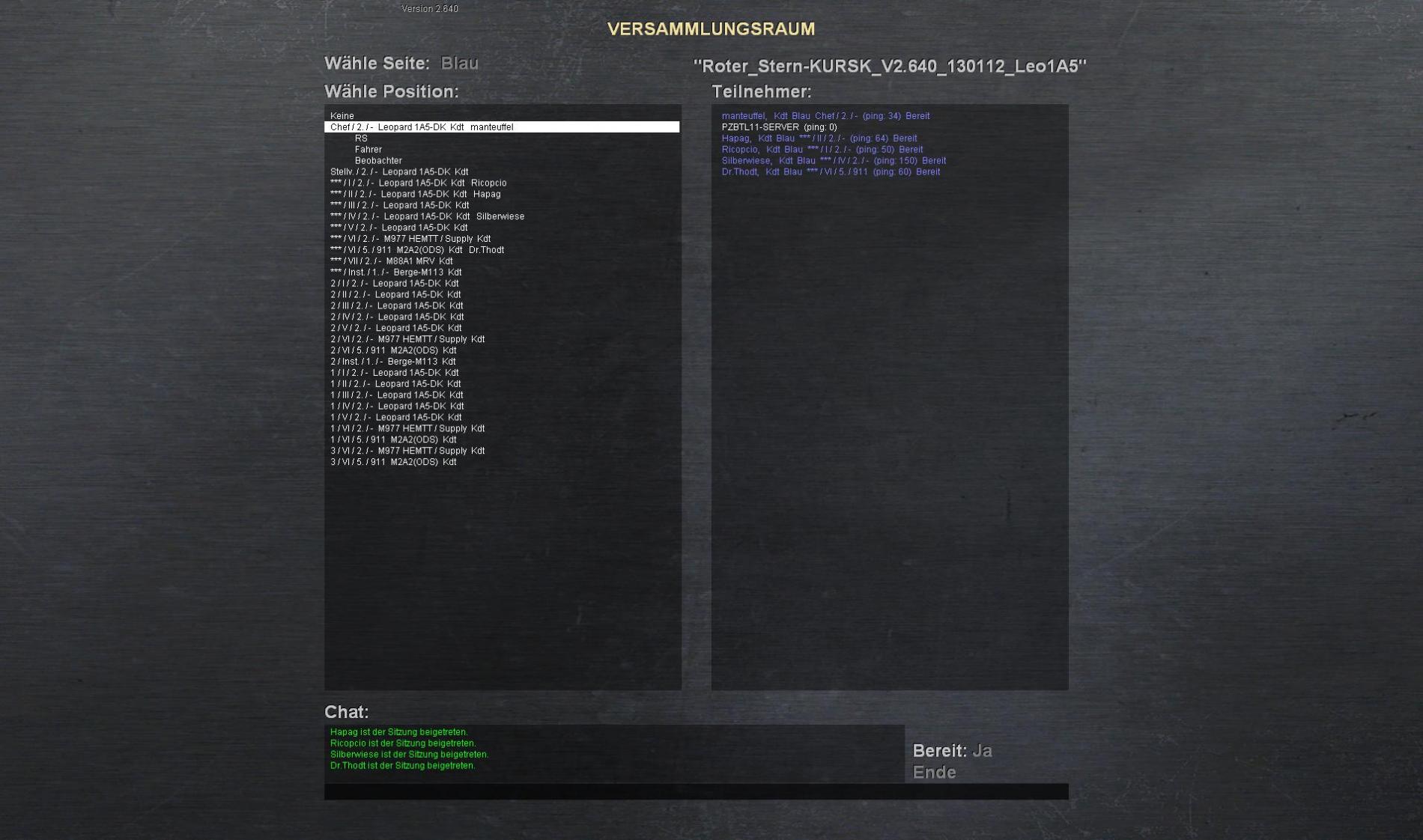1 M2 Zug - aber wieder mit HZF und Feuerleit (Thodt jammerte sehr laut)Folgekräfte kommen nach 70 Mike bis dahin muss man sich vor den Roten retten