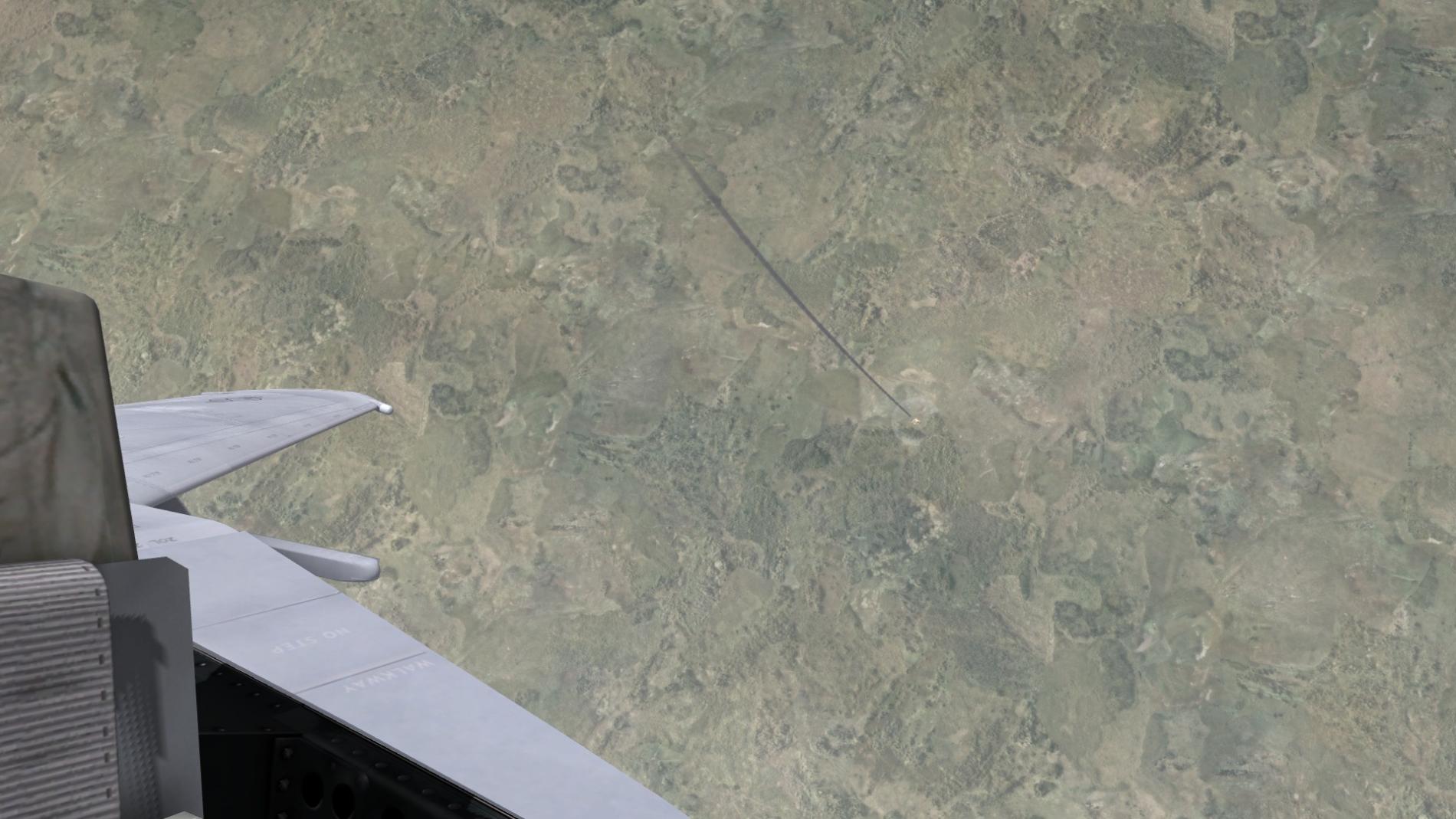 Sodalle, Zeit für die 2. Sidewinder, wieder ein Treffer (ohne das Flugverhalten des Gegners zu beeinflussen)
