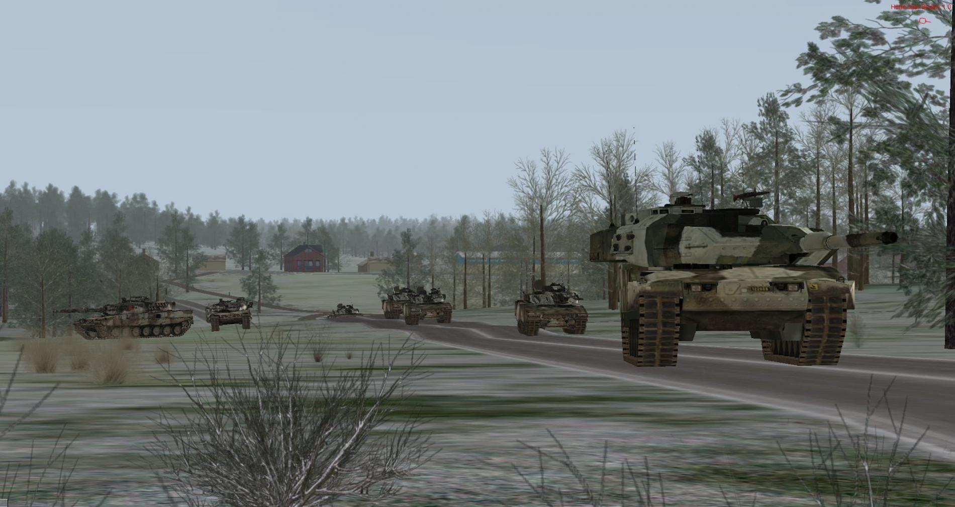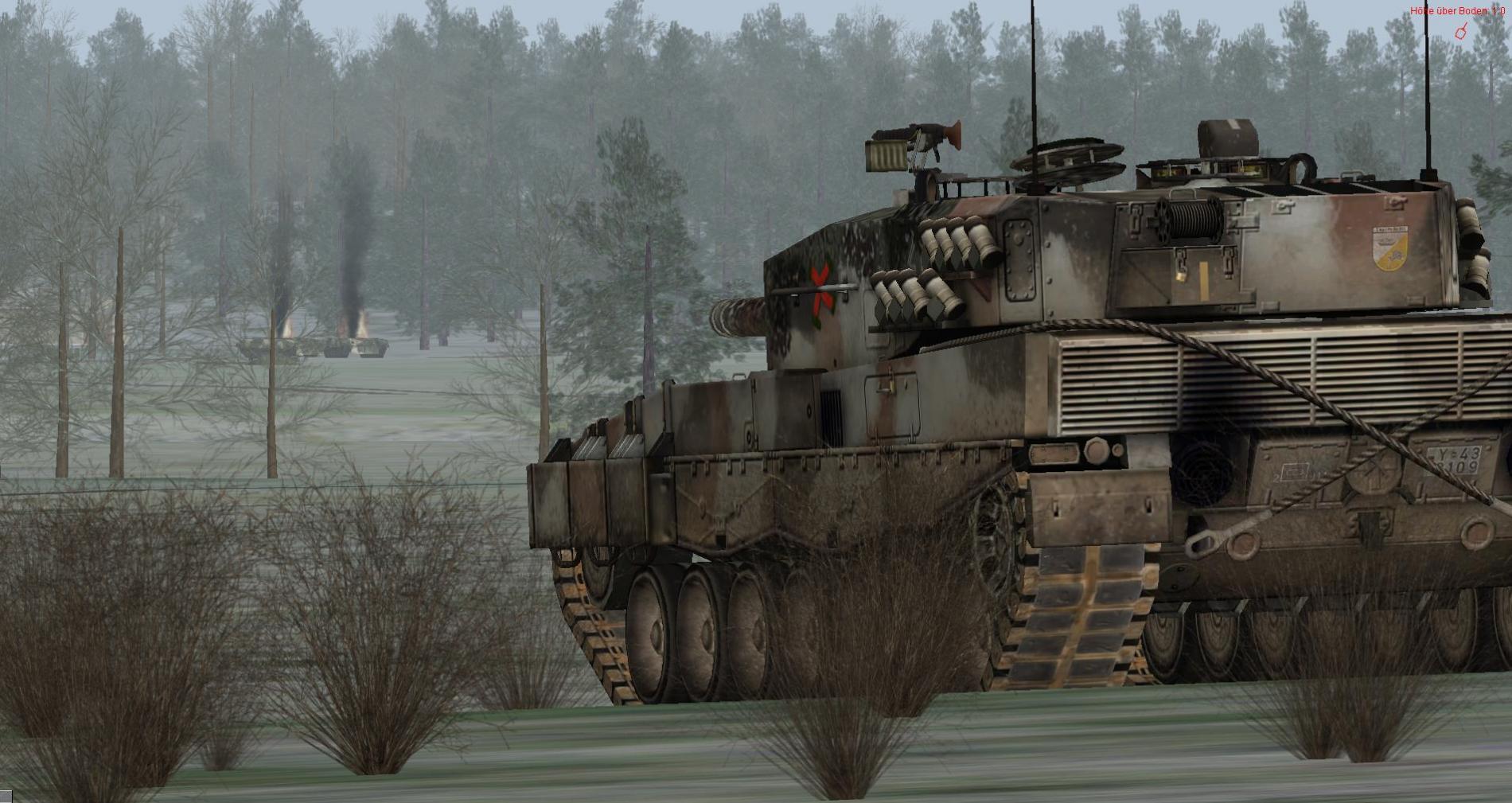 Diese Einheiten konnten aus der Bewegung heraus erfolgreich bekämpft werden, weiter gings Richtung West. Bei Erreichen FL3 wurde C Zug nachgezogen auf unsere Höhe.Die Aufklärer machten dem Btl voraus gute Arbeit und sichteten einen T-80 Zug der am westl. Seeufer in vorbereiteten Stellungen über den See hinweg in Richtung INKEROINEN und Brückenübergang sicherte.