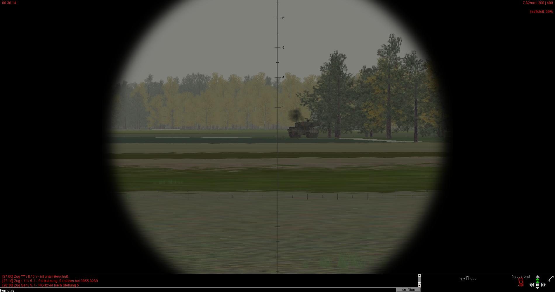 Schnell wurden an der Front auch feindliche Panzer und Schützenpanzer gesichtet. Die mit einem Ausfall eines Leopard1 vernichtet wurden.